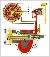 Hydrauliczna część przekładni składa się z tłoka (H) i zaworu rozdzielczego wbudowanego w wałek wejściowy i śrubę. Rdzeń zaworu (Q) tworzy jedną całość z wałkiem wejściowym (P). Funkcję obudowy zaworu (R) pełni odcinek śruby (K). Wałek wejściowy jest ułożyskowany wewnątrz śruby. Na powierzchni zarówno rdzenia, jak i obudowy zaworu rozdzielczego znajduje się sześć wzdłużnych gniazd. Poprzez odpowiednie kanały olejowe kolejne gniazda w rdzeniu są naprzemiennie połączone z przewodem zasilającym (C) i powrotnym (D). Trzy spośród sześciu gniazd w obudowie zaworu są połączone z lewą stroną tłoka, pozostałe trzy gniazda zaś są połączone ze stroną prawą. Połączenie tych gniazd jest również naprzemienne.
