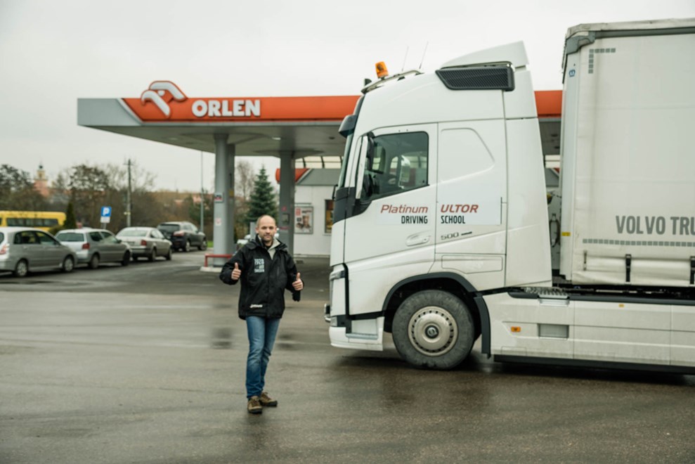 Szkoła jazdy Platinum Ultor to program skierowany do właścicieli baz transportowych, którzy chcą zwiększyć świadomość bezpieczeństwa swoich kierowców, podnieść ich zawodowe kompetencje oraz obniżyć zużycie paliwa. Podczas tegorocznej edycji szkoleń kierowcy mieli okazję pogłębić wiedzę teoretyczną dotyczącą technik jazdy, aspektów bezpieczeństwa oraz zasad eco drivingu wpływających na optymalizację zużycia paliwa. Drugim etapem szkolenia była jazda zestawem składającym się z ciągnika siodłowego Volvo FH o mocy 500 KM oraz załadowanej naczepy, o łącznej masie 37 ton. Każdy z kierowców pokonywał wyznaczony odcinek drogi o długości 36 km.