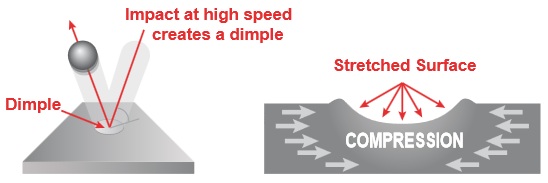 - Poprawia zdolność smarowania powierzchni – powstałe przez uderzenia śrutu "mikrodołeczki" umożliwiają bardzie efektywne smarowanie.