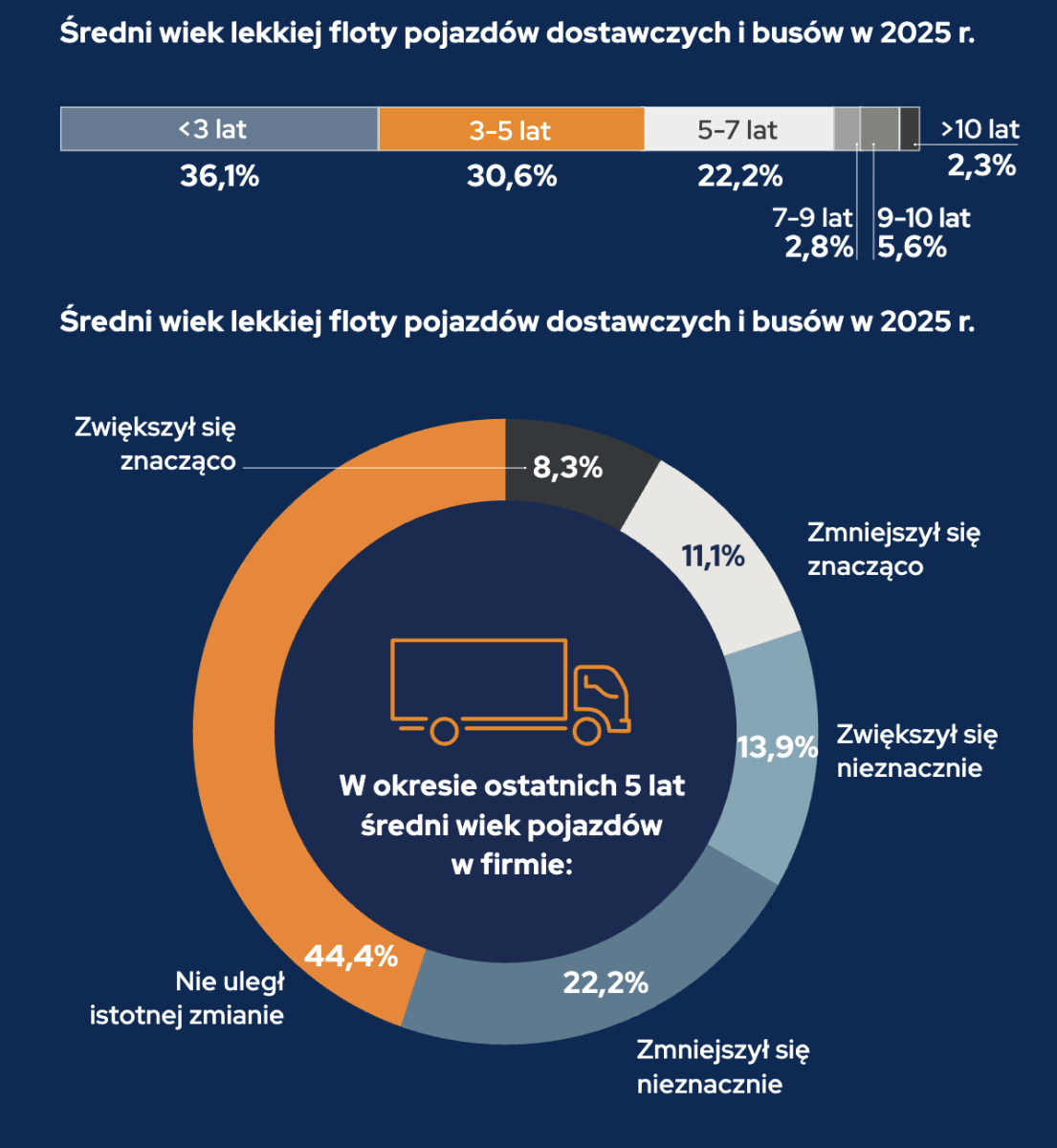 Segment lekkich pojazdów dostawczych i busów wyrasta na jeden z najbardziej dynamicznych obszarów polskiego rynku flotowego. Podczas gdy inne działy transportu stawiają na ostrożne utrzymanie skali, floty lekkie wykazują wyraźną skłonność do ekspansji, co wynika przede wszystkim z rosnącej roli logistyki miejskiej oraz obsługi sektora e-commerce. Jest to rynek młody i nowoczesny, w którym blisko dwie trzecie pojazdów nie przekracza pięciu lat eksploatacji.
